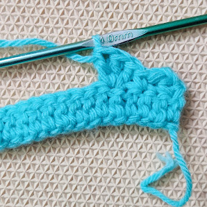 - Turn your project and insert the hook into the first stitch.(the first Double Crochet)