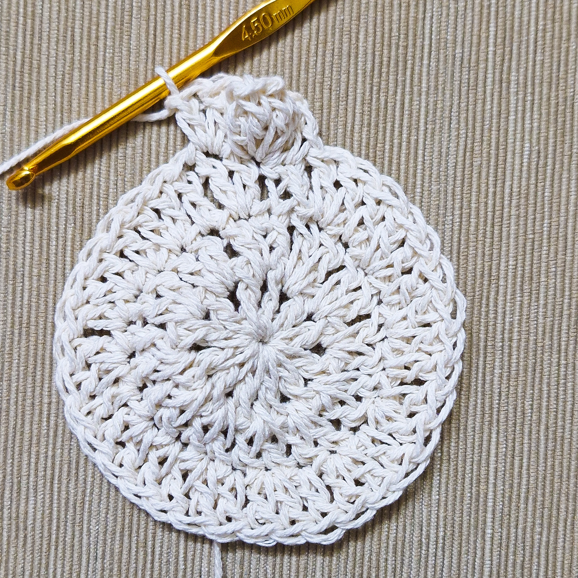 Repeat(1DC, Chain 1) untill you have total 12 DC and 12 Chain 1 Space.